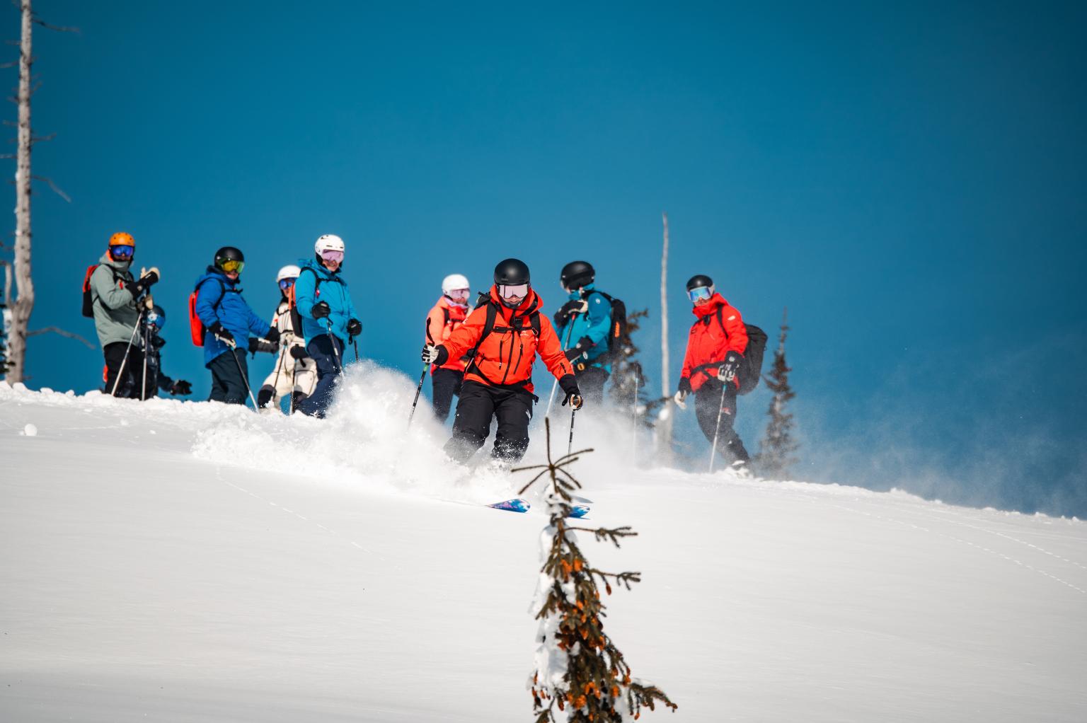 Mar 14 - 21 TOUR 615 Weekly Total 52 cm Snowbase 373 cm 1900m6300ft - Treeline Best Runs Sundown Dixon Glacier Sparkies Soft Cotton Highlights Sunday was perfect, starting with a sunny morning of high‑alpine skiing and ending with a snowy afternoon weaving through the trees.