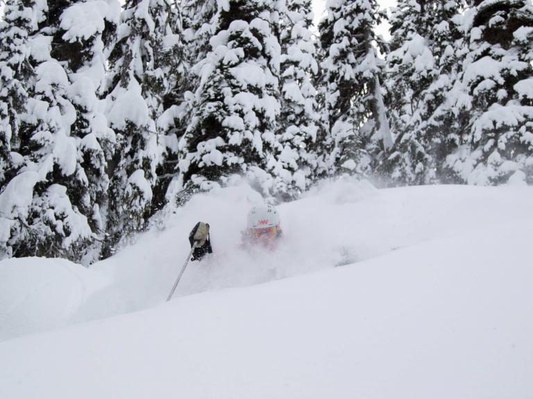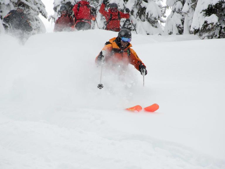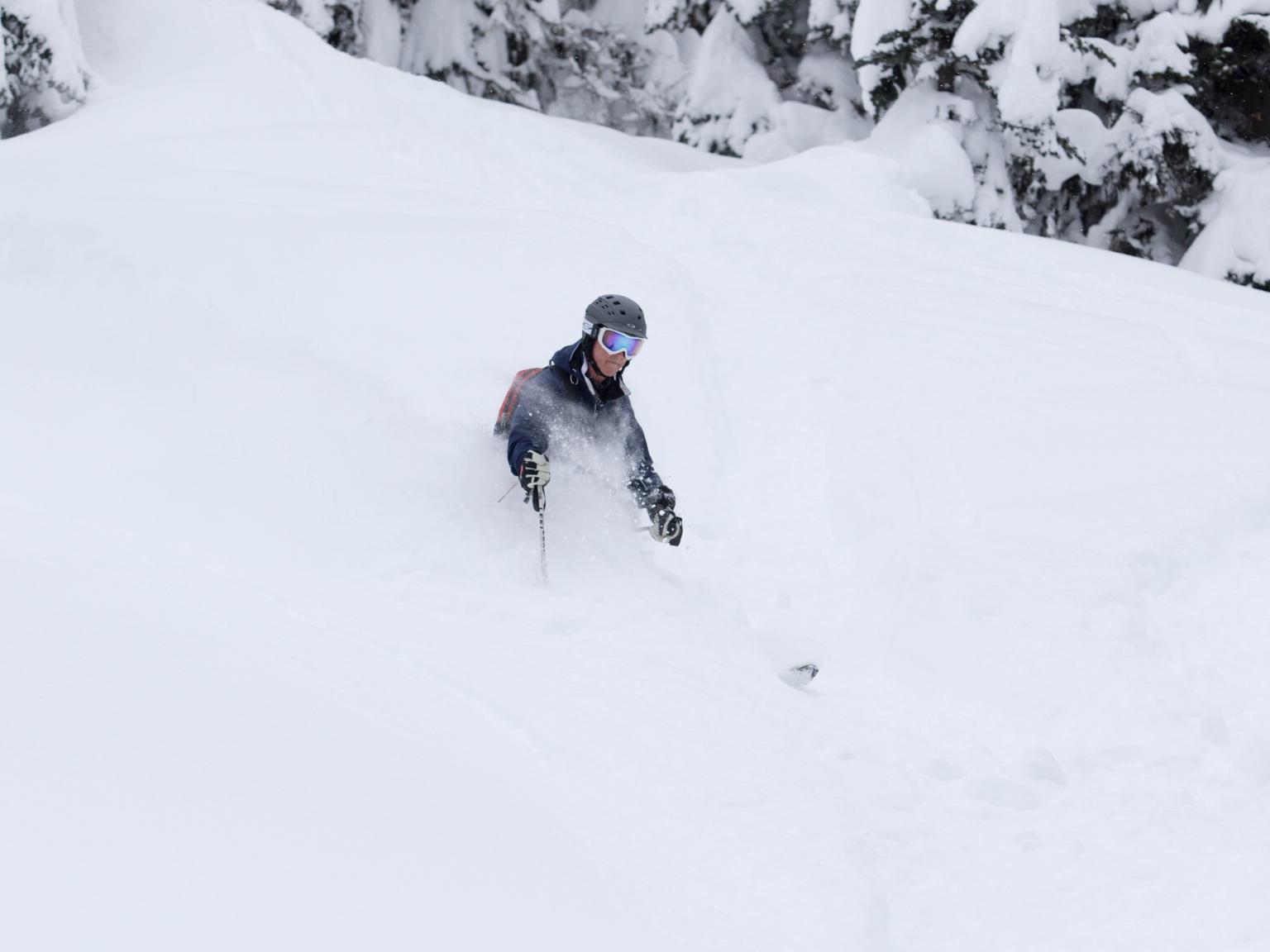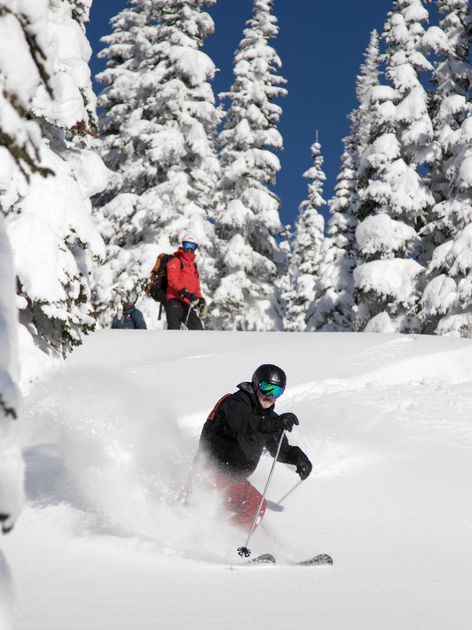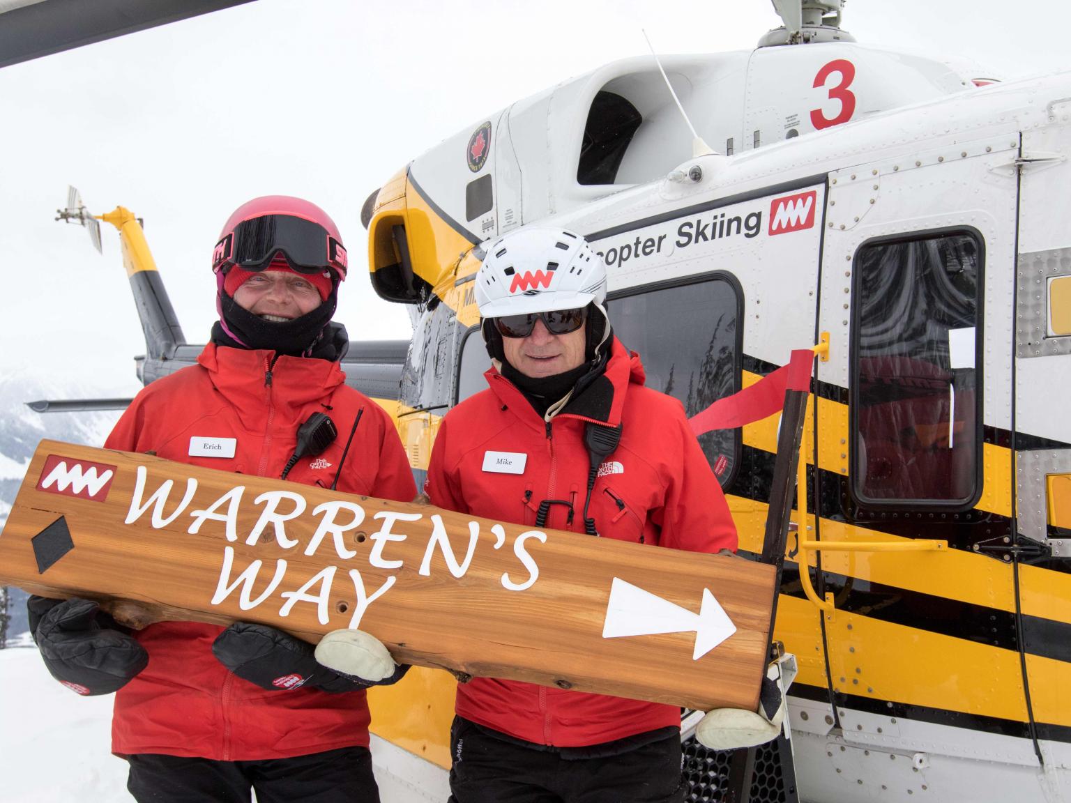 The first highlight was celebrating Warren Miller Day with Erich and Mike Wiegele posting the run sign on Warren's dedicated run on Saddle Mountain - Warrens Way and skiing it with open hearts. Another notable highlight was Erich's group skiing on Erich's Ridge in waist deep, 2% density powder blowing overhead.