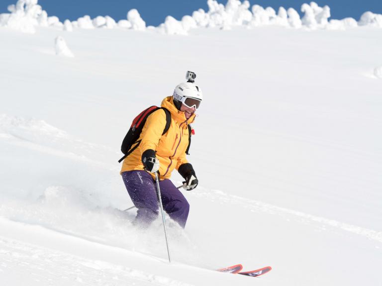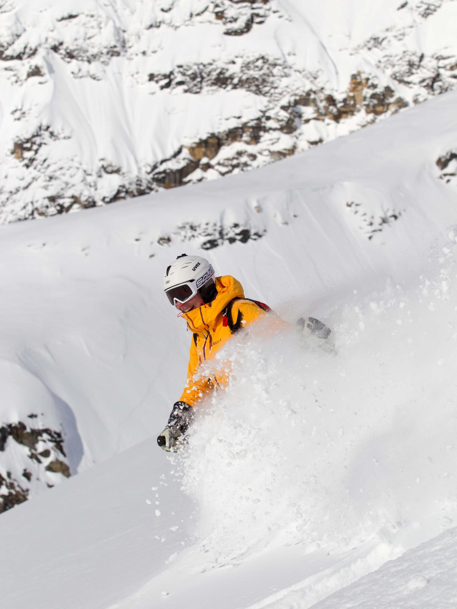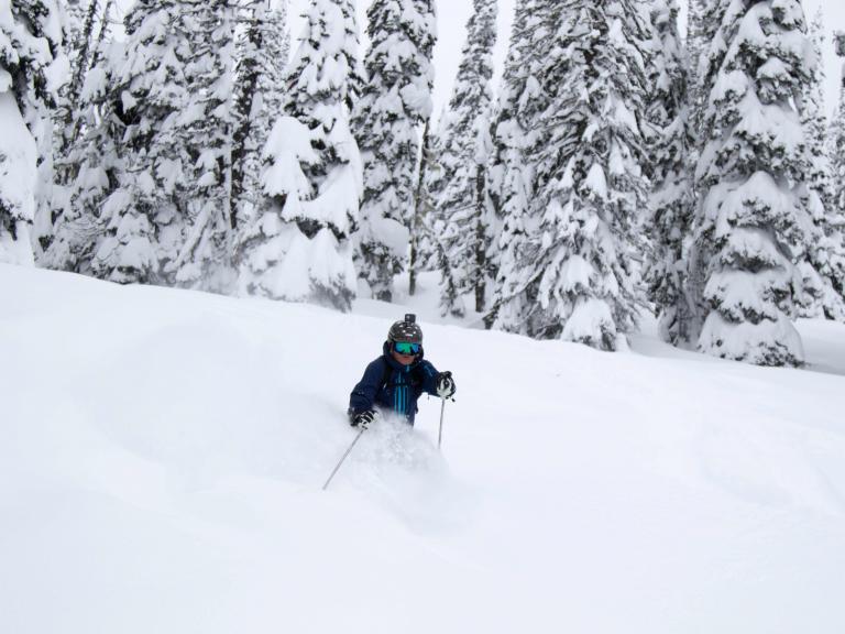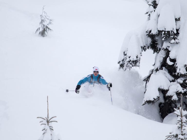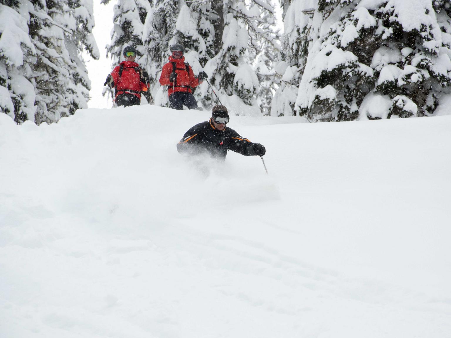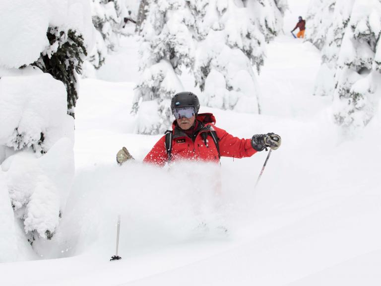 The first highlight was celebrating Warren Miller Day with Erich and Mike Wiegele posting the run sign on Warren's dedicated run on Saddle Mountain - Warrens Way and skiing it with open hearts. Another notable highlight was Erich's group skiing on Erich's Ridge in waist deep, 2% density powder blowing overhead.