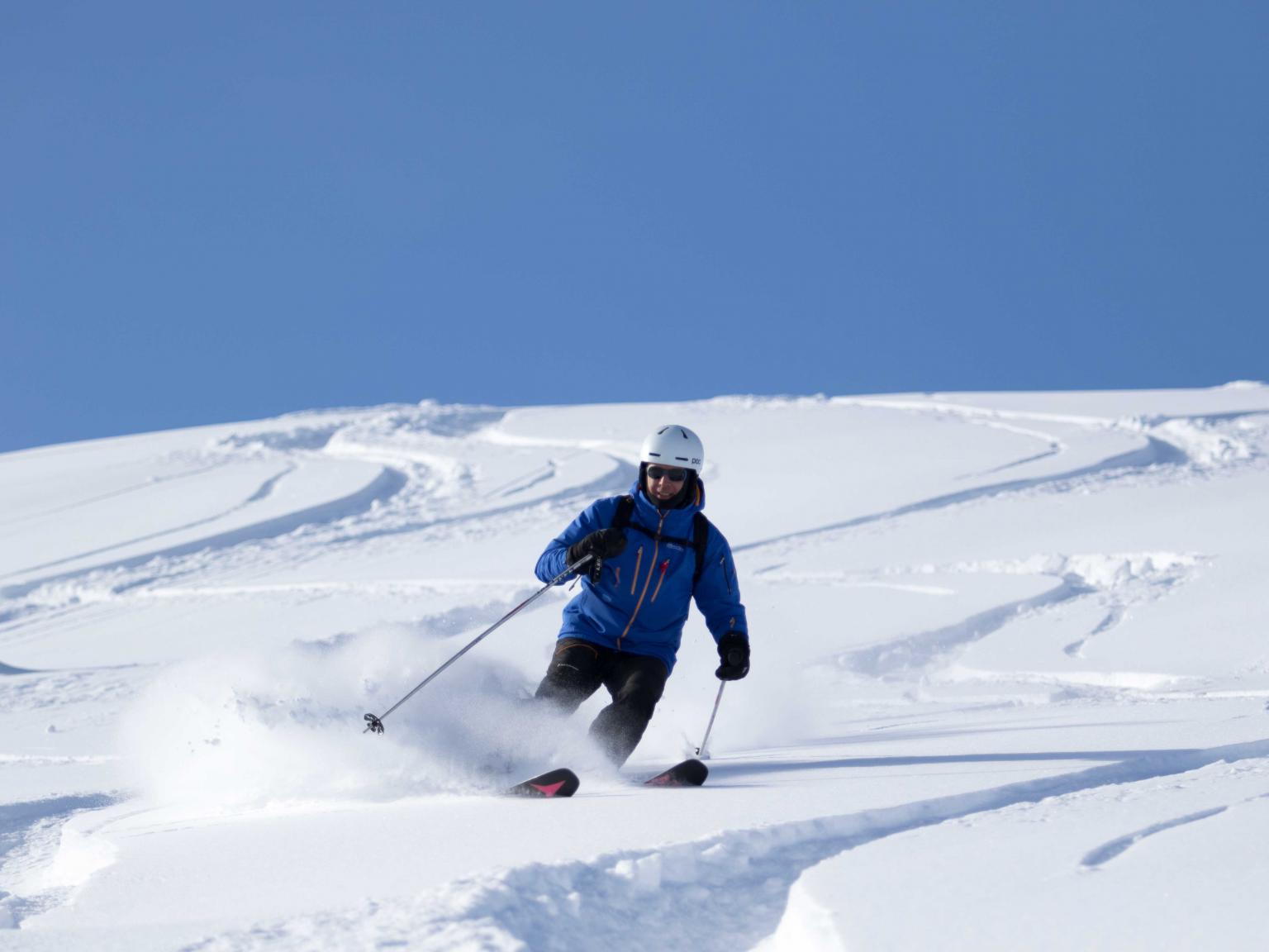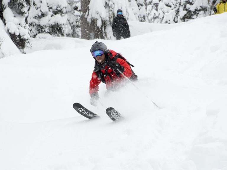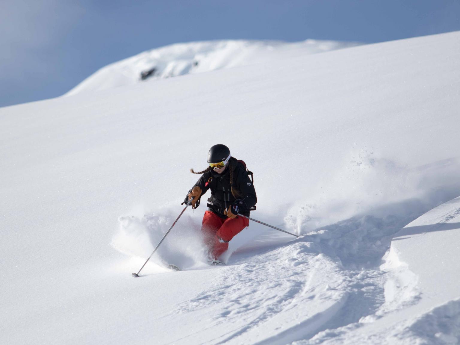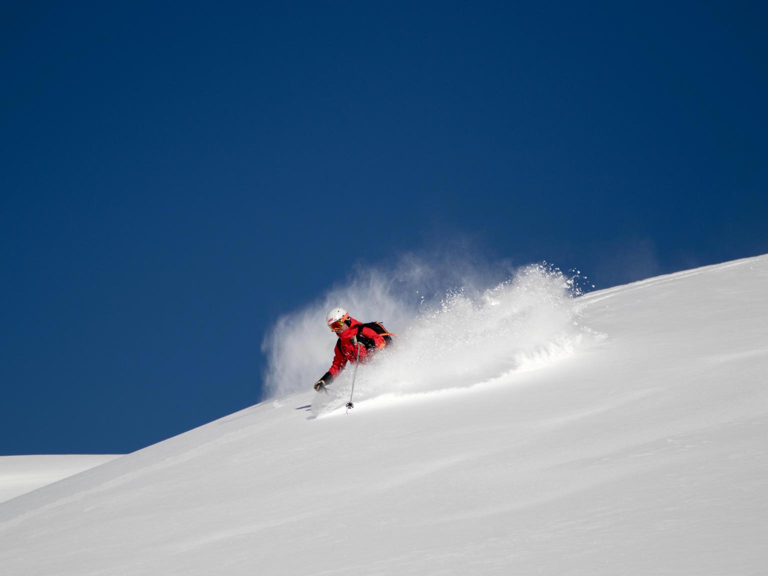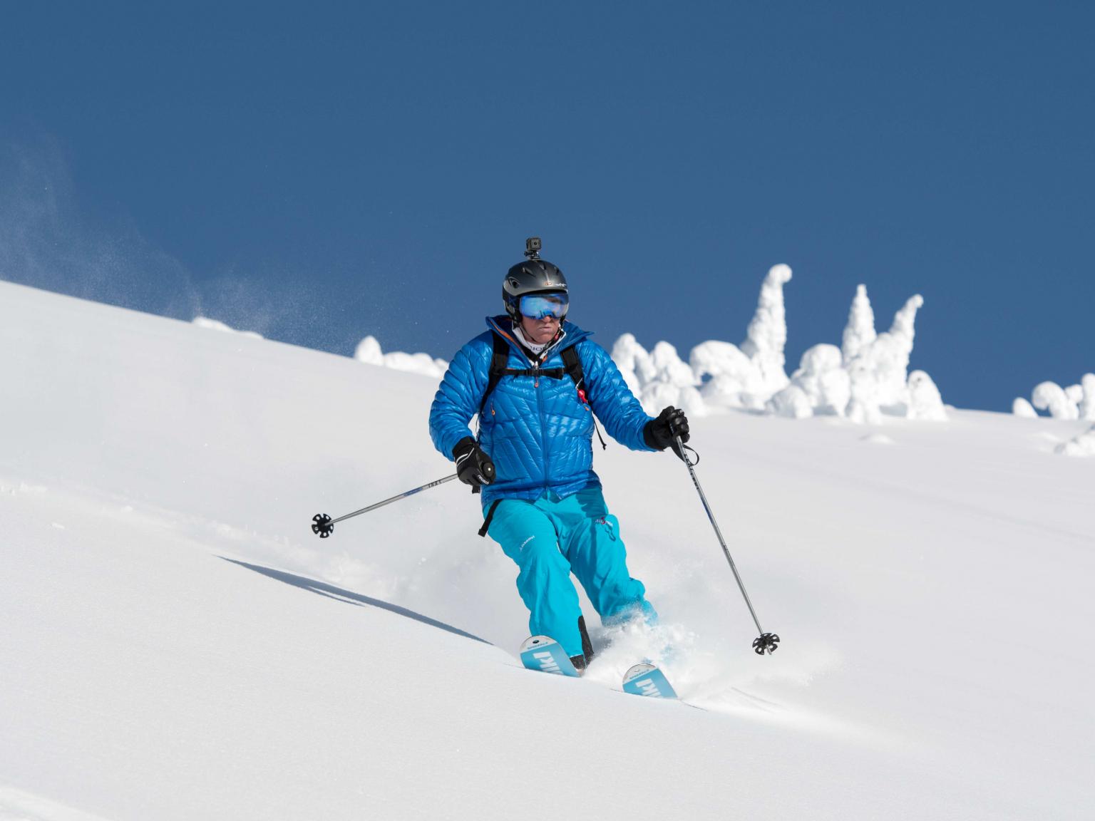 The first highlight was celebrating Warren Miller Day with Erich and Mike Wiegele posting the run sign on Warren's dedicated run on Saddle Mountain - Warrens Way and skiing it with open hearts. Another notable highlight was Erich's group skiing on Erich's Ridge in waist deep, 2% density powder blowing overhead.