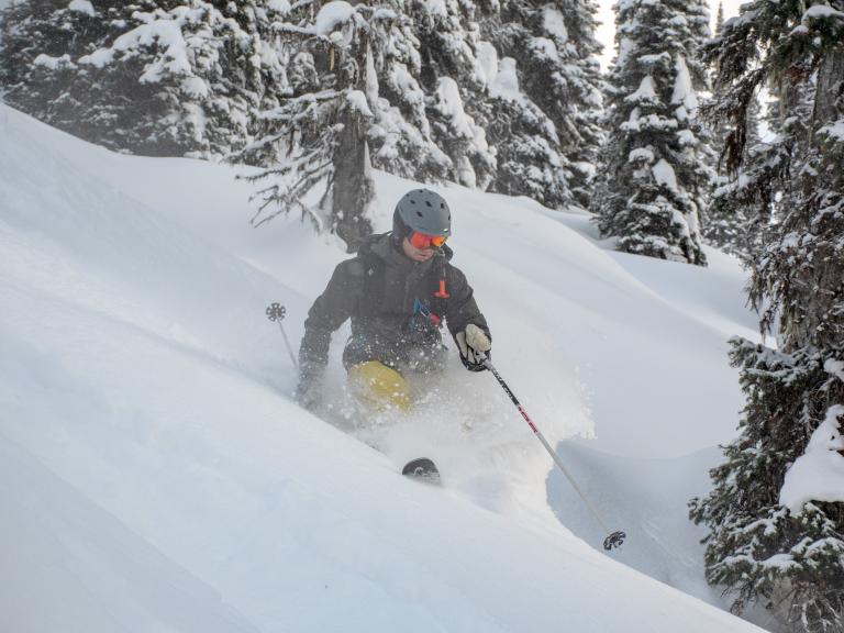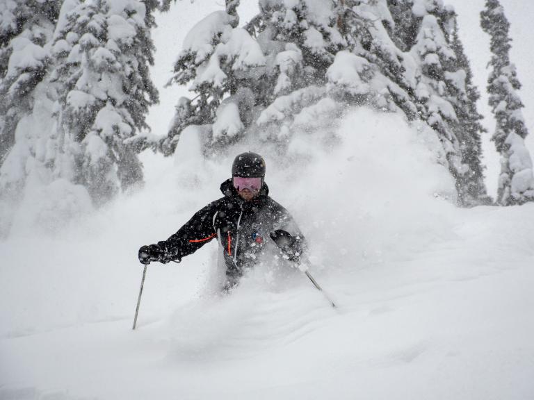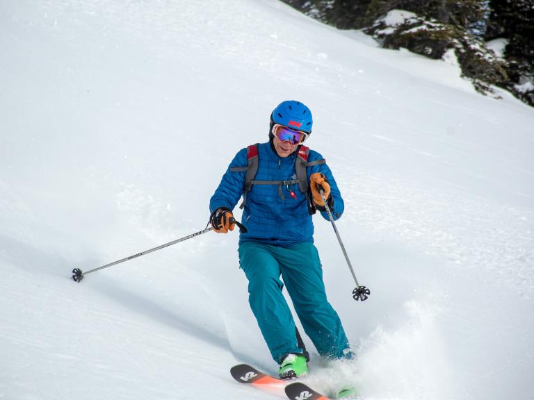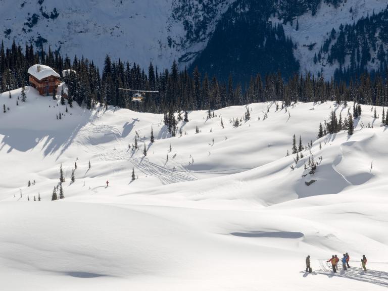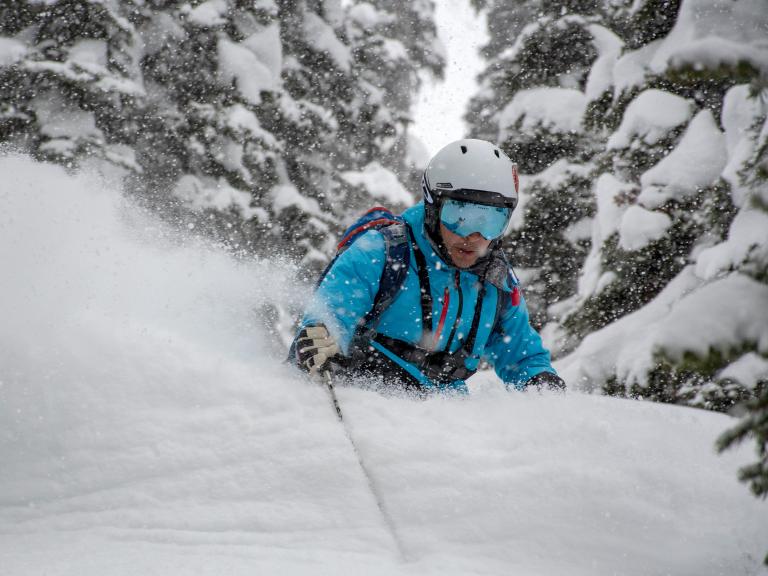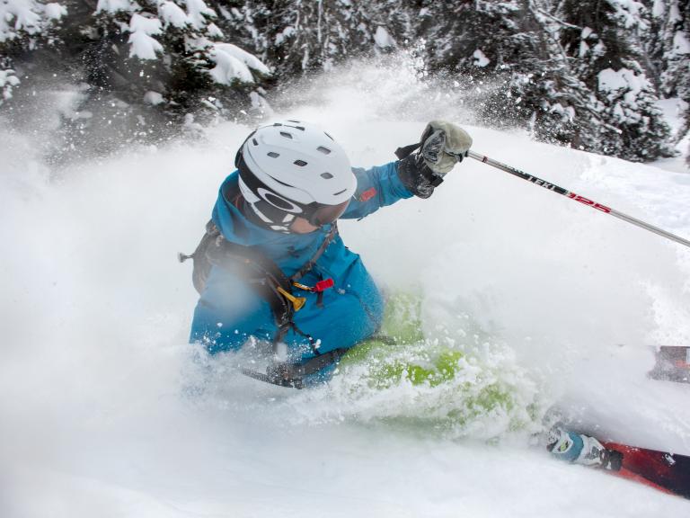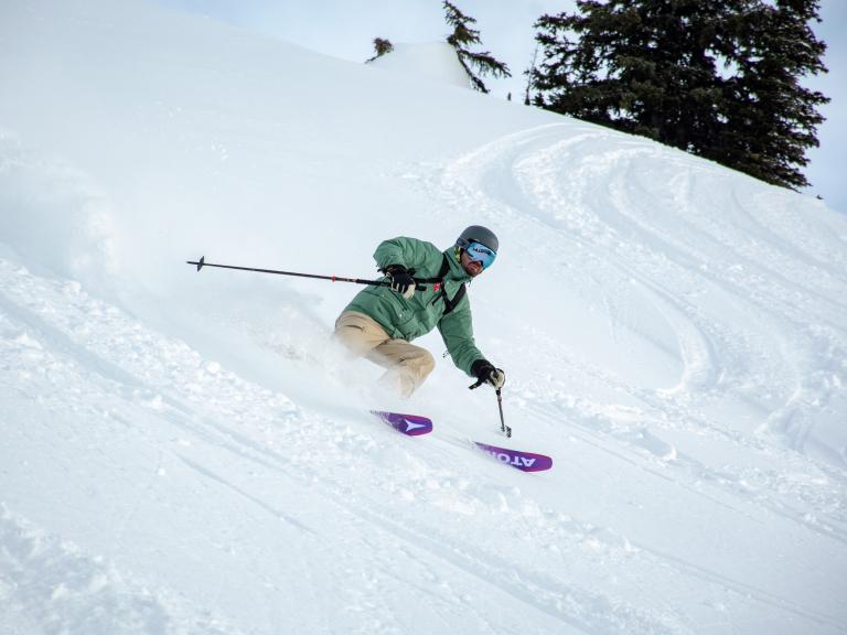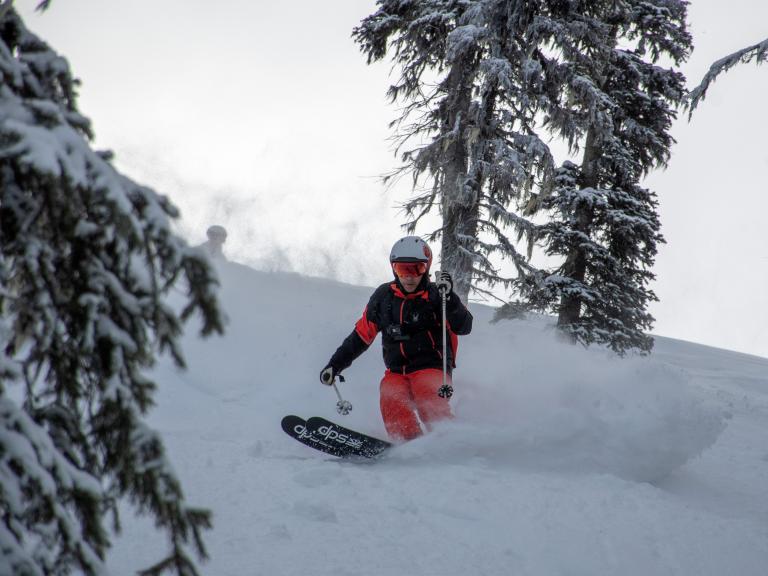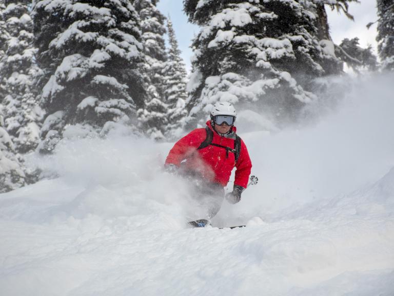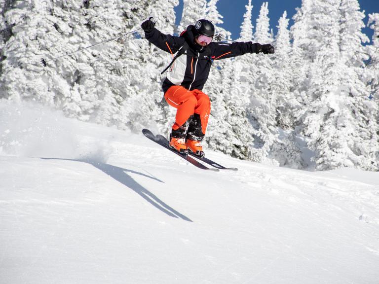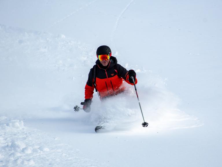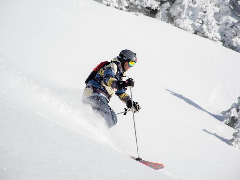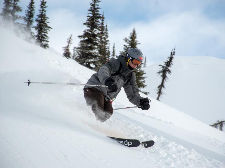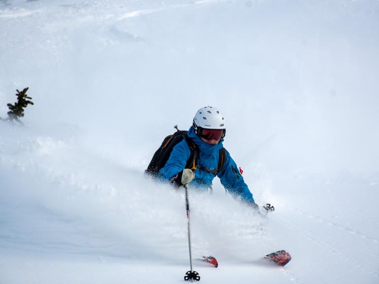 Ballagner Bowl under blue sky and in low density champagne powder.