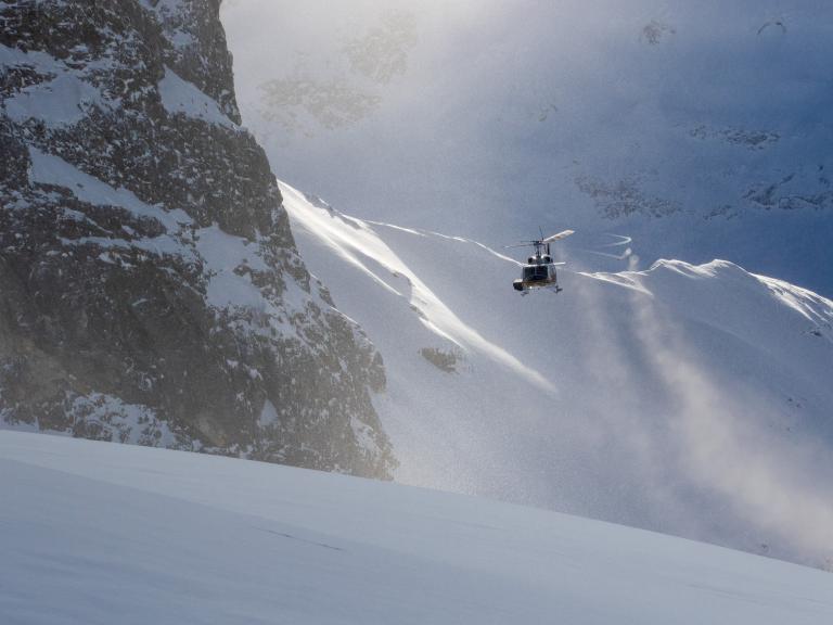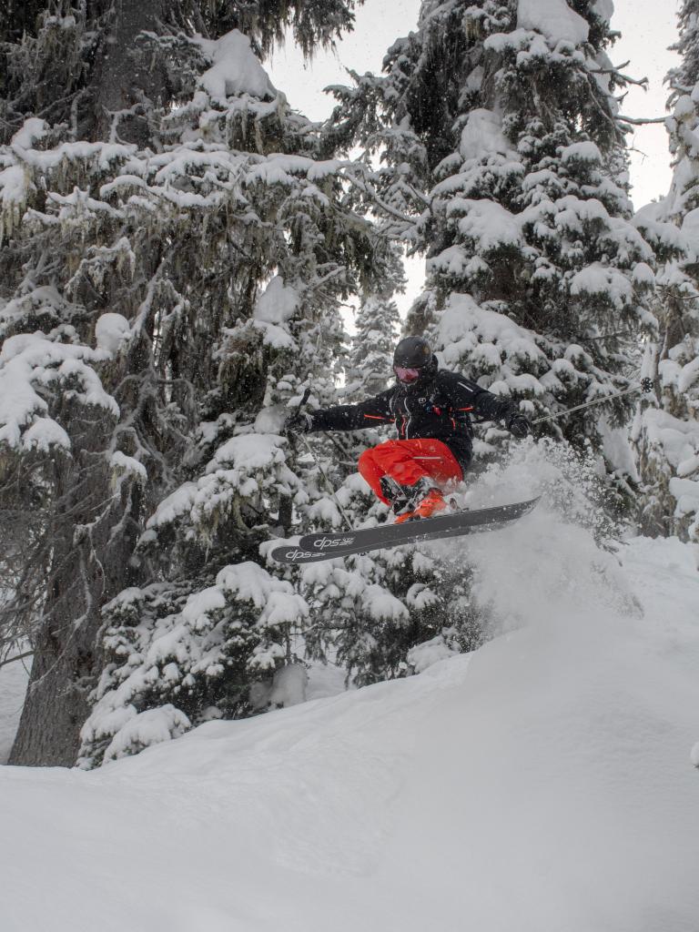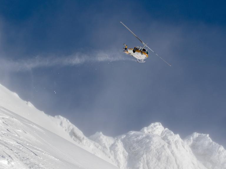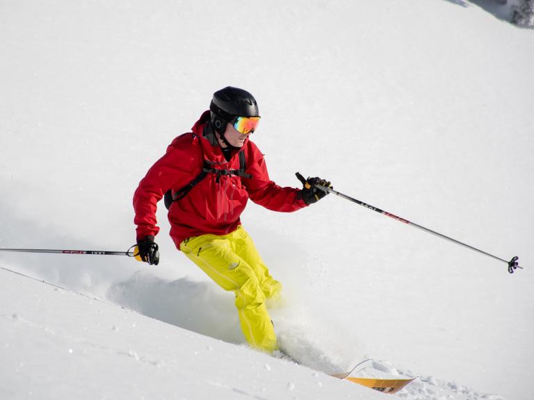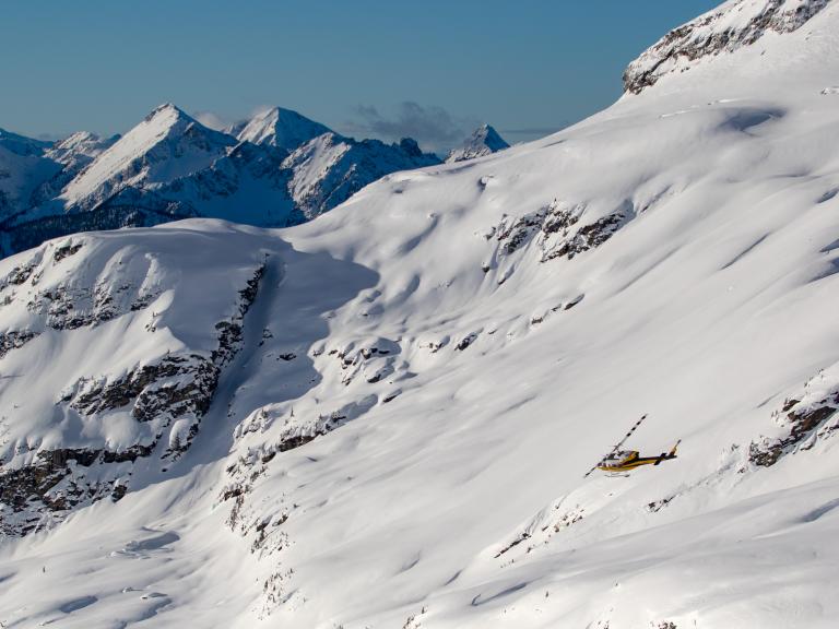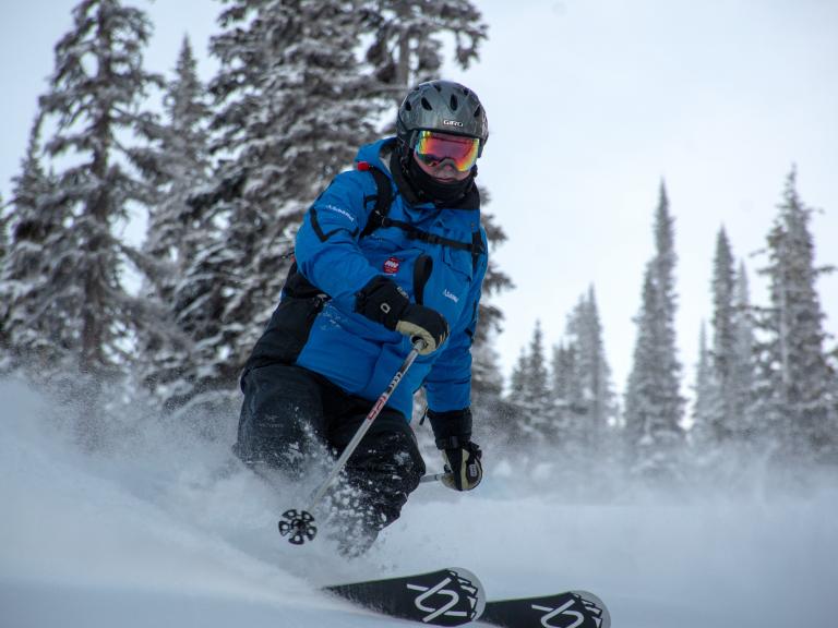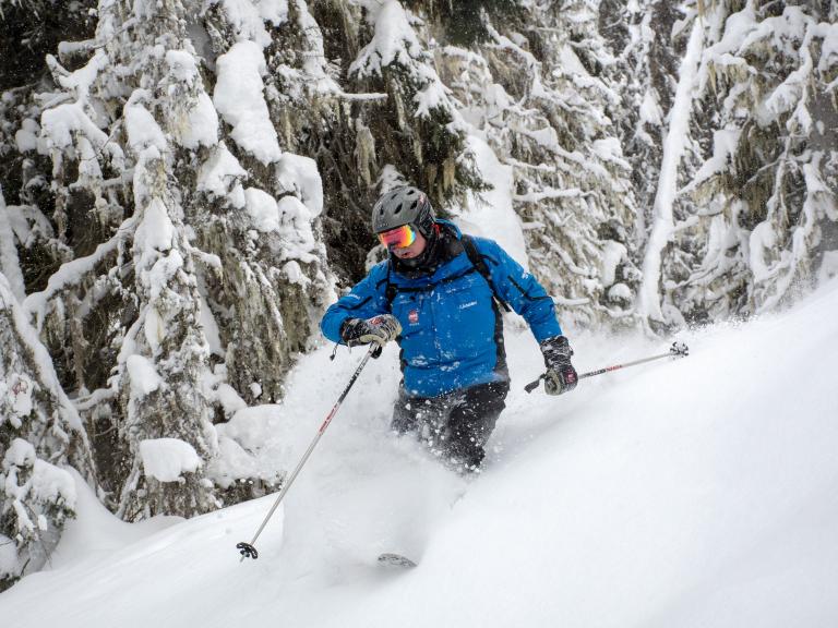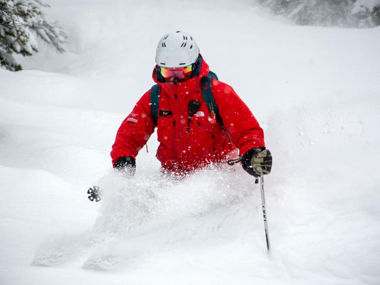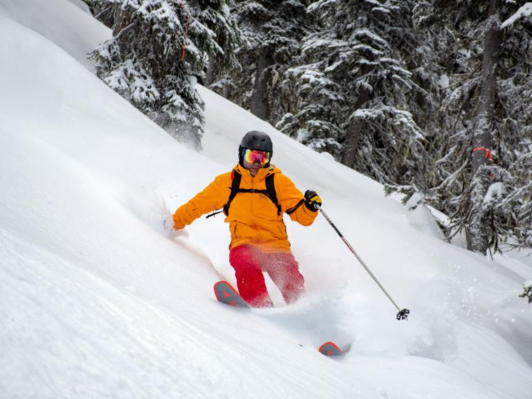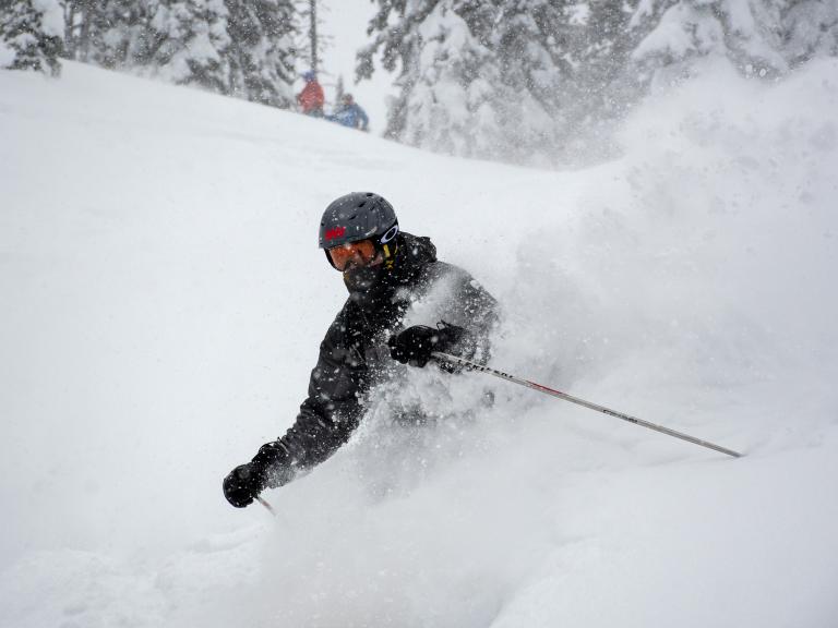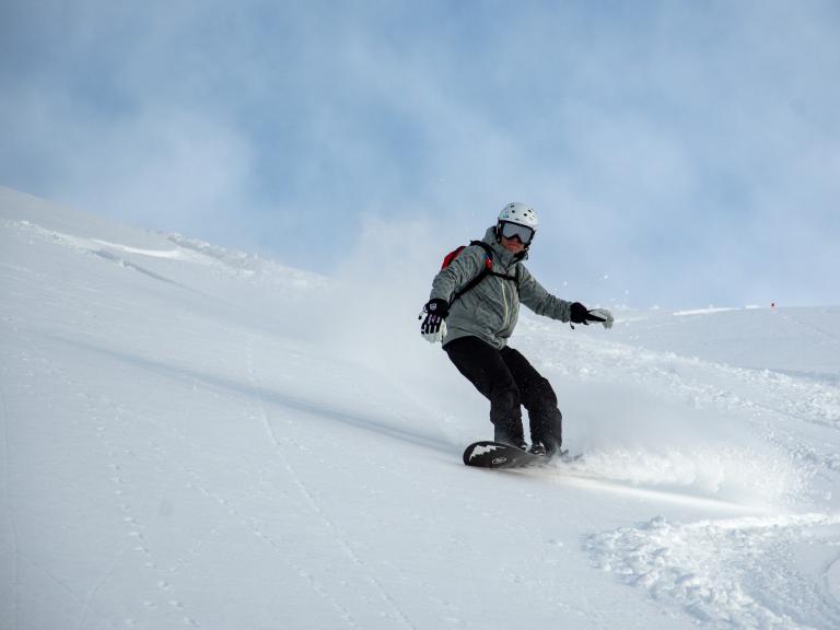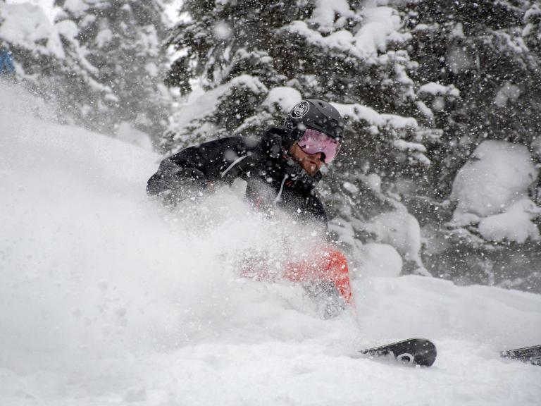 Ballagner Bowl under blue sky and in low density champagne powder.